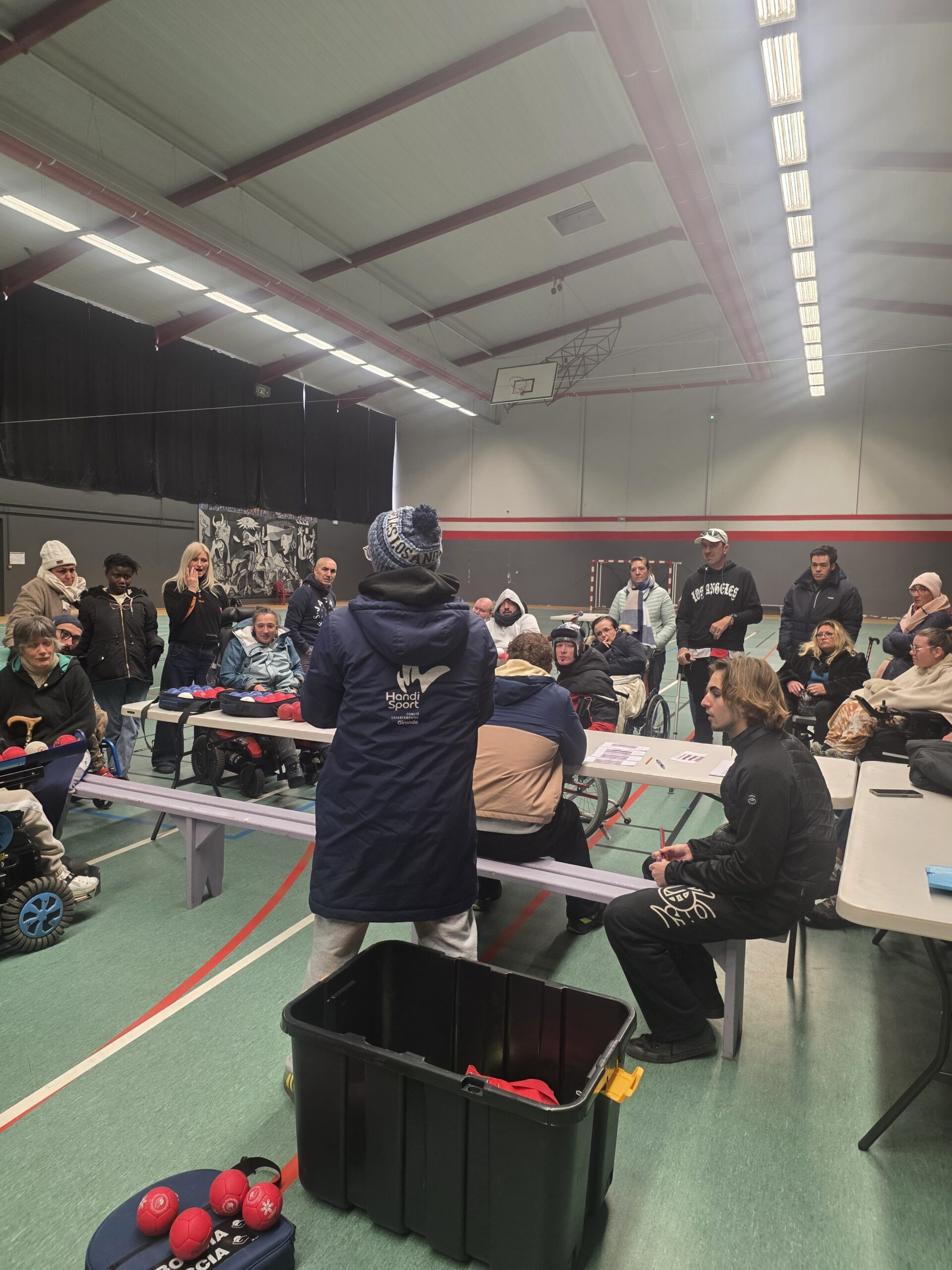 La compétition, tenue dans les installations du gymnase de notre partenaire la CMCAS Gironde, a rassemblé plus de 20 participants venus de toute le département, illustrant l’impact de cette initiative. Le cadre était festif et inclusif, avec un stands d’information sur le handisport, des démonstrations pour les curieux et des matchs à voir en live !