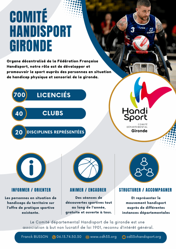 Accompagner le Comité Handisport Gironde, c’est permettre à toutes les personnes en situation de handicap physique et sensoriel d’accéder à une activité sportive à proximité de son lieu d’habitation, de permettre aux enfants de découvrir et de s’épanouir au travers des activités que nous proposons, aux personnes handicapées de se maintenir en bonne santé et de favoriser leur bien-être.